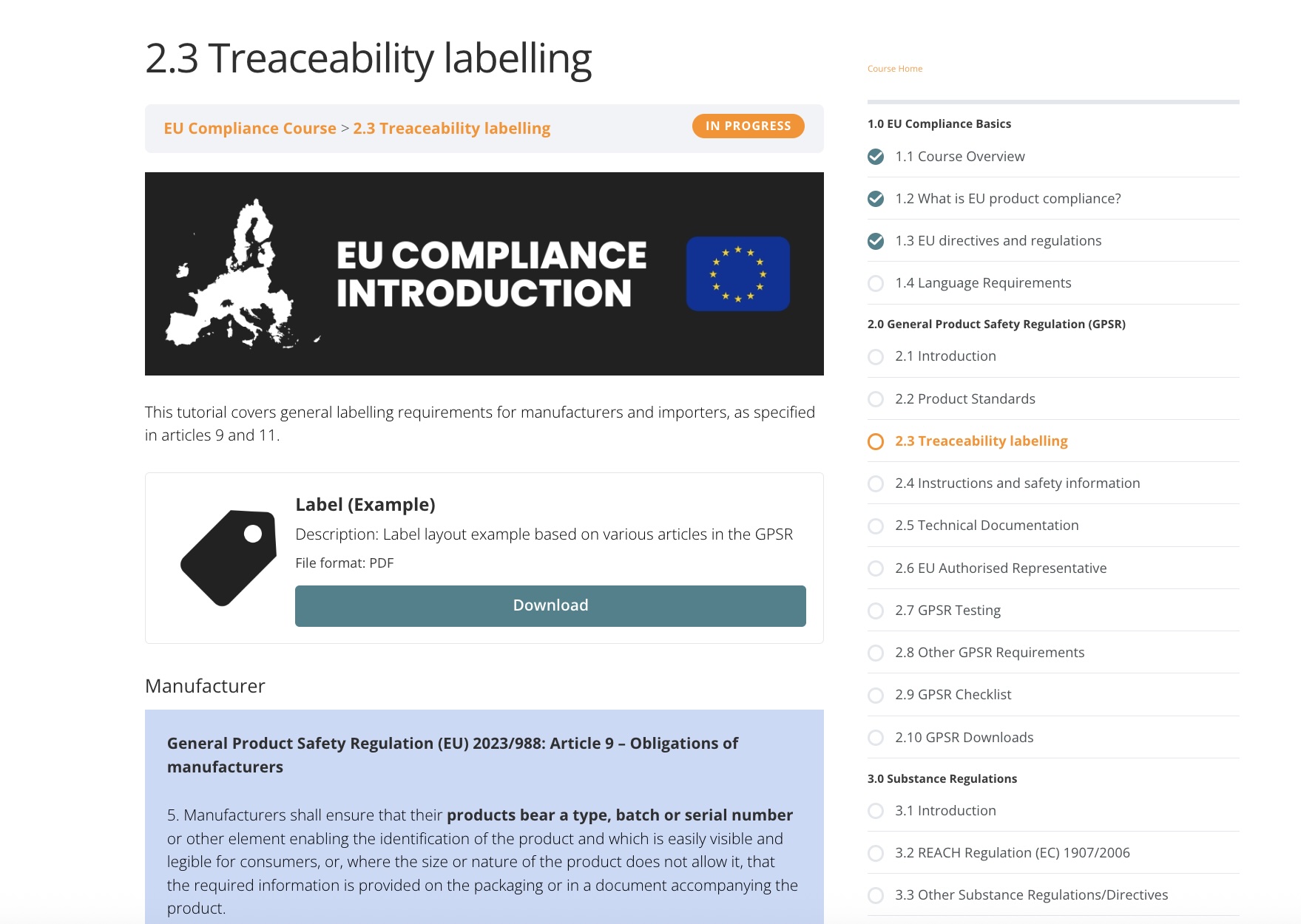 This course covers the GPSR, REACH, and other compliance requirements that apply to most consumer products