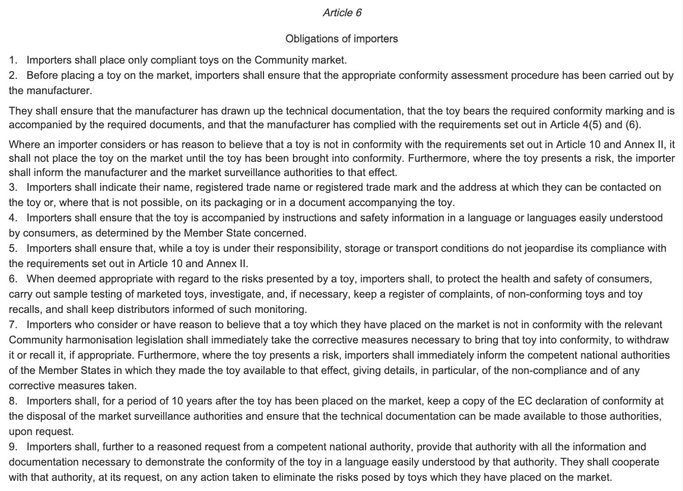 Once this is established, you can then review the importer obligations article to identify the documentation you need to obtain.